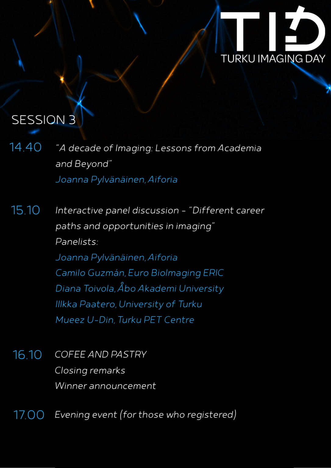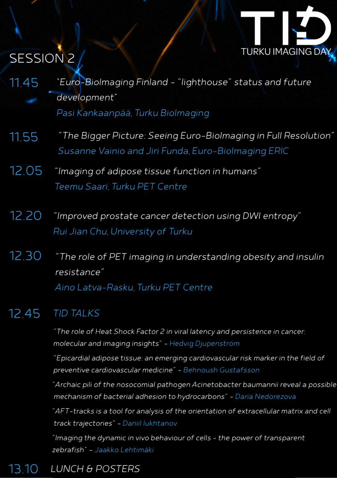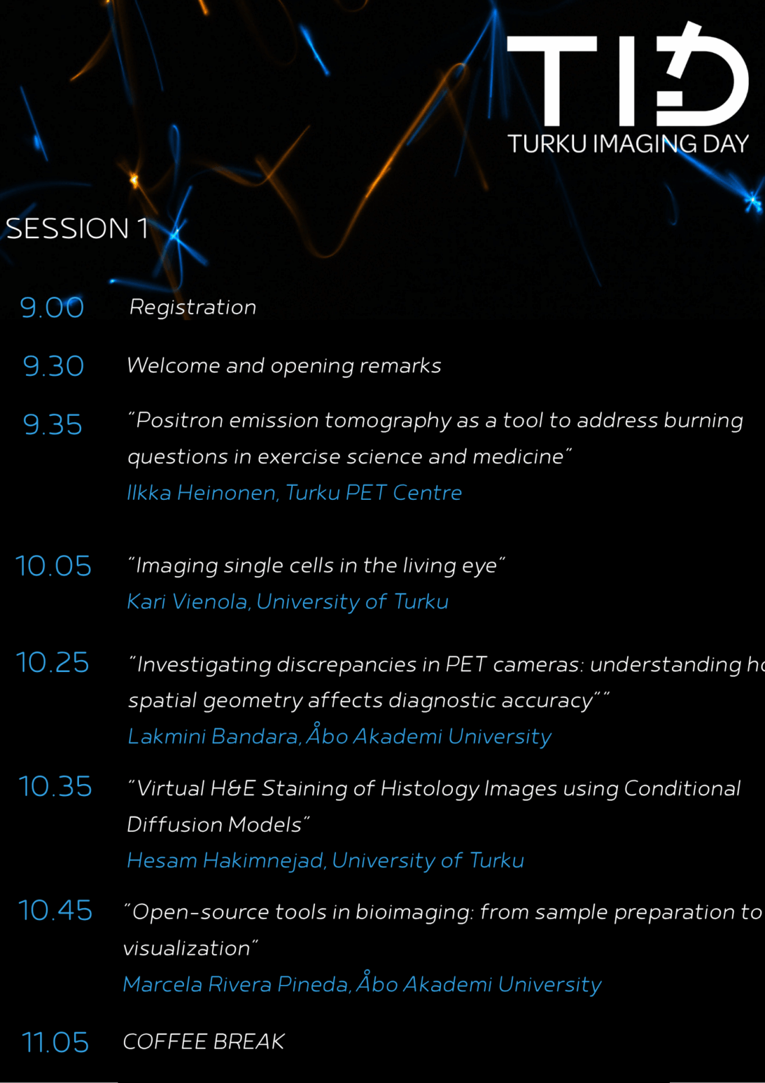 Turku Imaging Day is coming back for its third edition on 22nd October 2025, organized by The Field of View Research Program and Turku BioImaging. Check the official program below, and join us for a day of fantastic talks and networking opportunities. Official timetable to be announced soon!